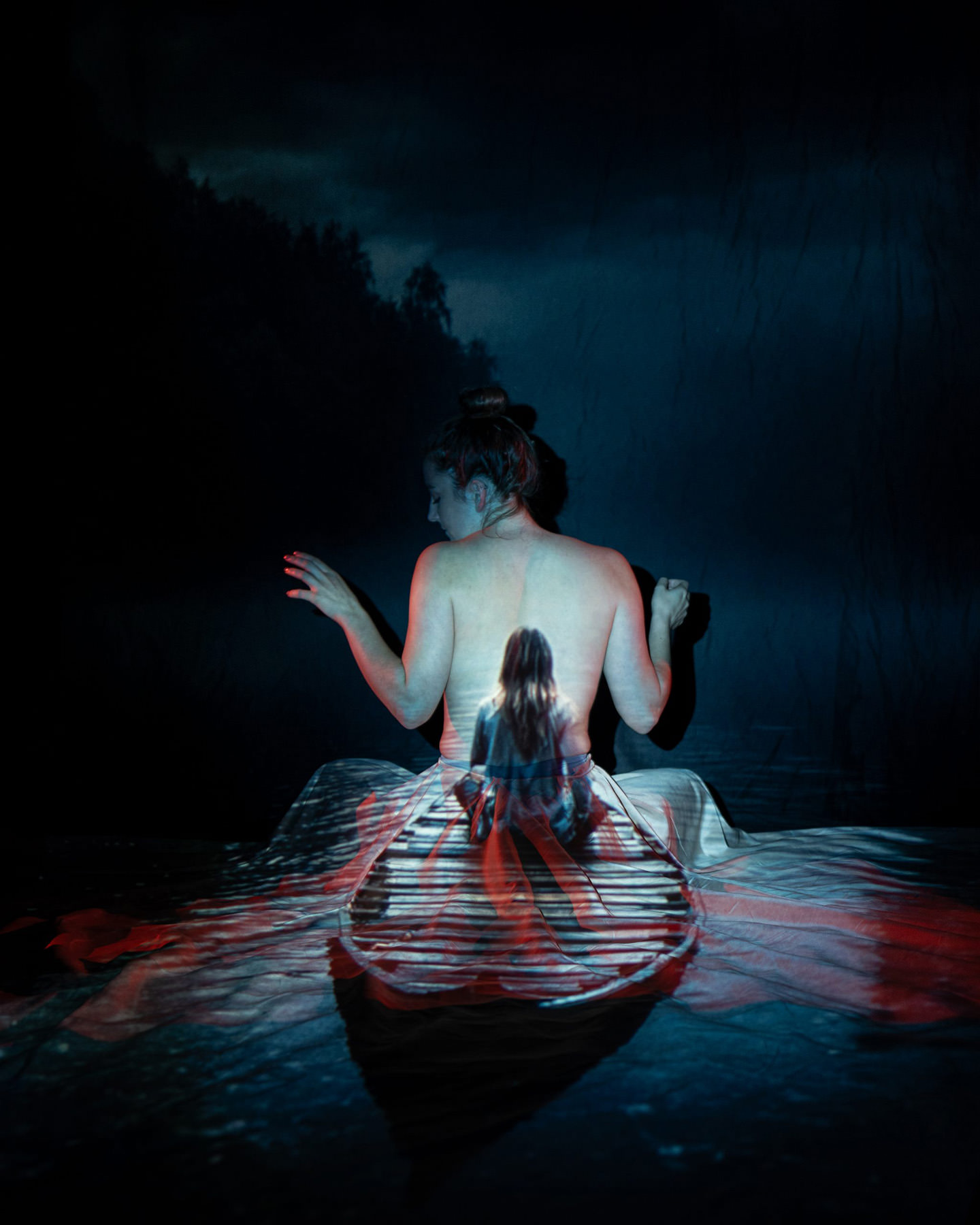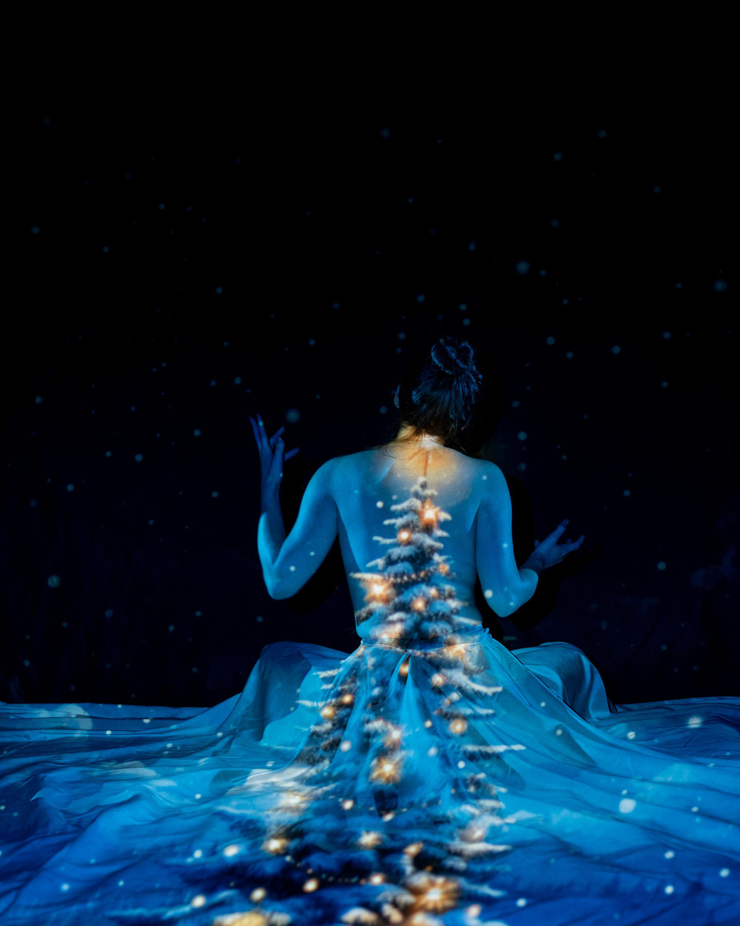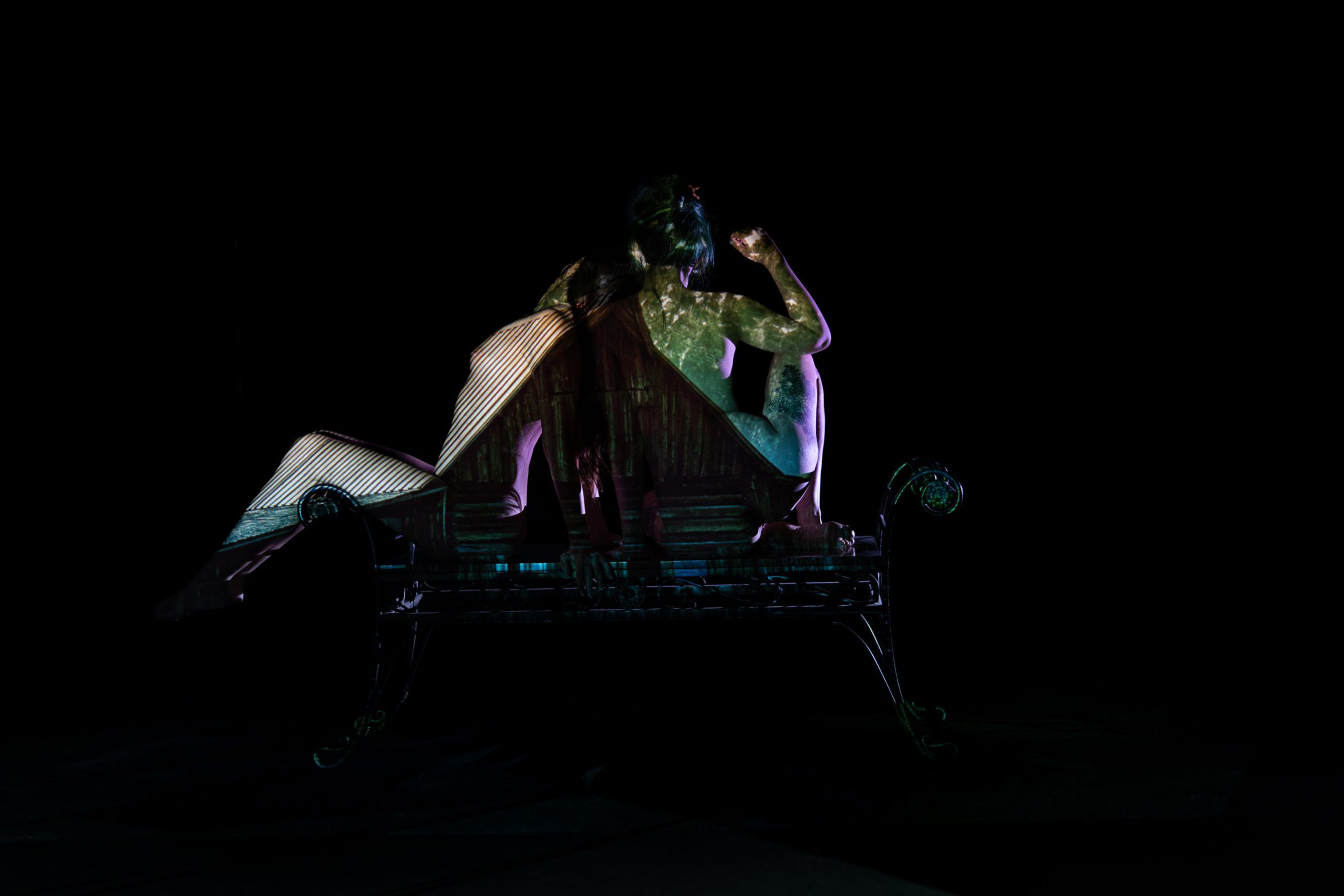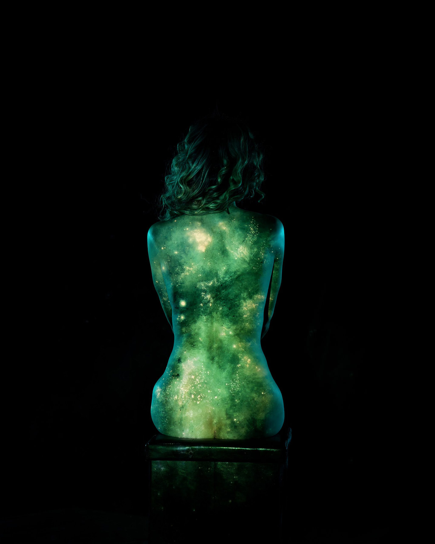 Body paint, evolved. Back projection photography at its finest — skip the mess and step into the light. Using a specialized multi-projector setup and custom-coded software, we wrap your form in digital textures, light, and motion.
